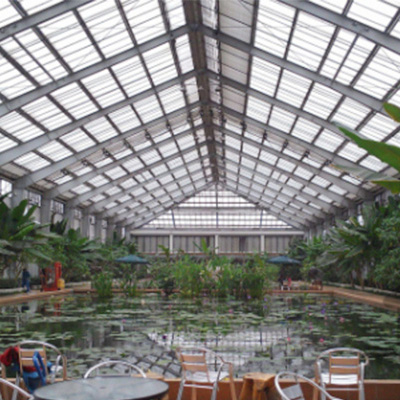 生態餐廳是對溫室大棚進一步的制造而形成的,有著一種美好而又清新的休閑生活,通過現代化的智能溫室技術和生態自然形成的景光融合在一起,營造一種舒適、綠色、健康、高大上的餐環境;展現出人與景色的融合,蔬果作物的共生共榮。并通過配套,對室內濕度、溫度有效的控制,讓人感受